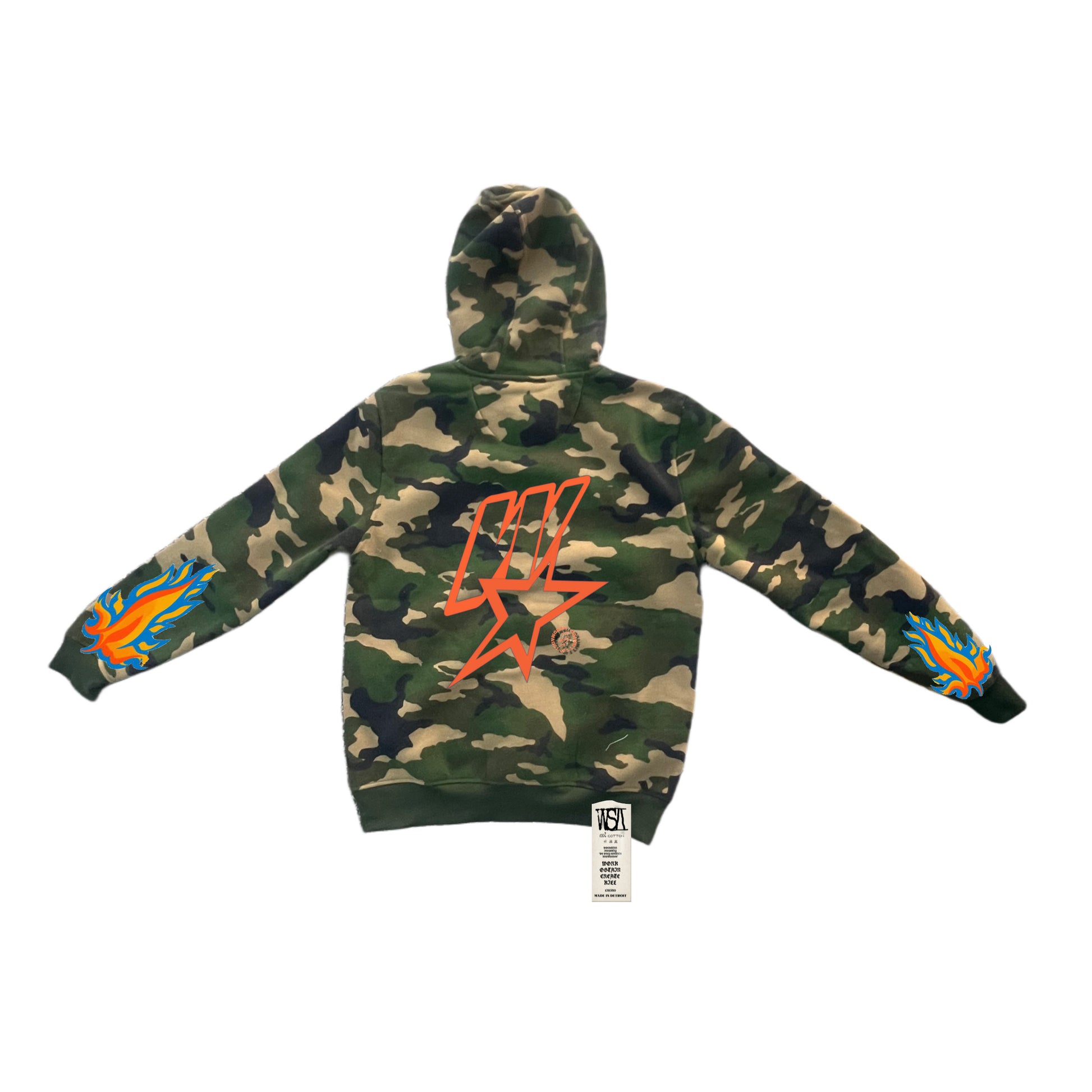 The WSI Camo Star Zip Up is a hand-painted, limited edition garment that showcases intricate and unique designs. Each piece is a one-of-a-kind work of art, making it a truly special addition to any wardrobe. With a stylish zip-up design, this jacket is both fashionable and functional.